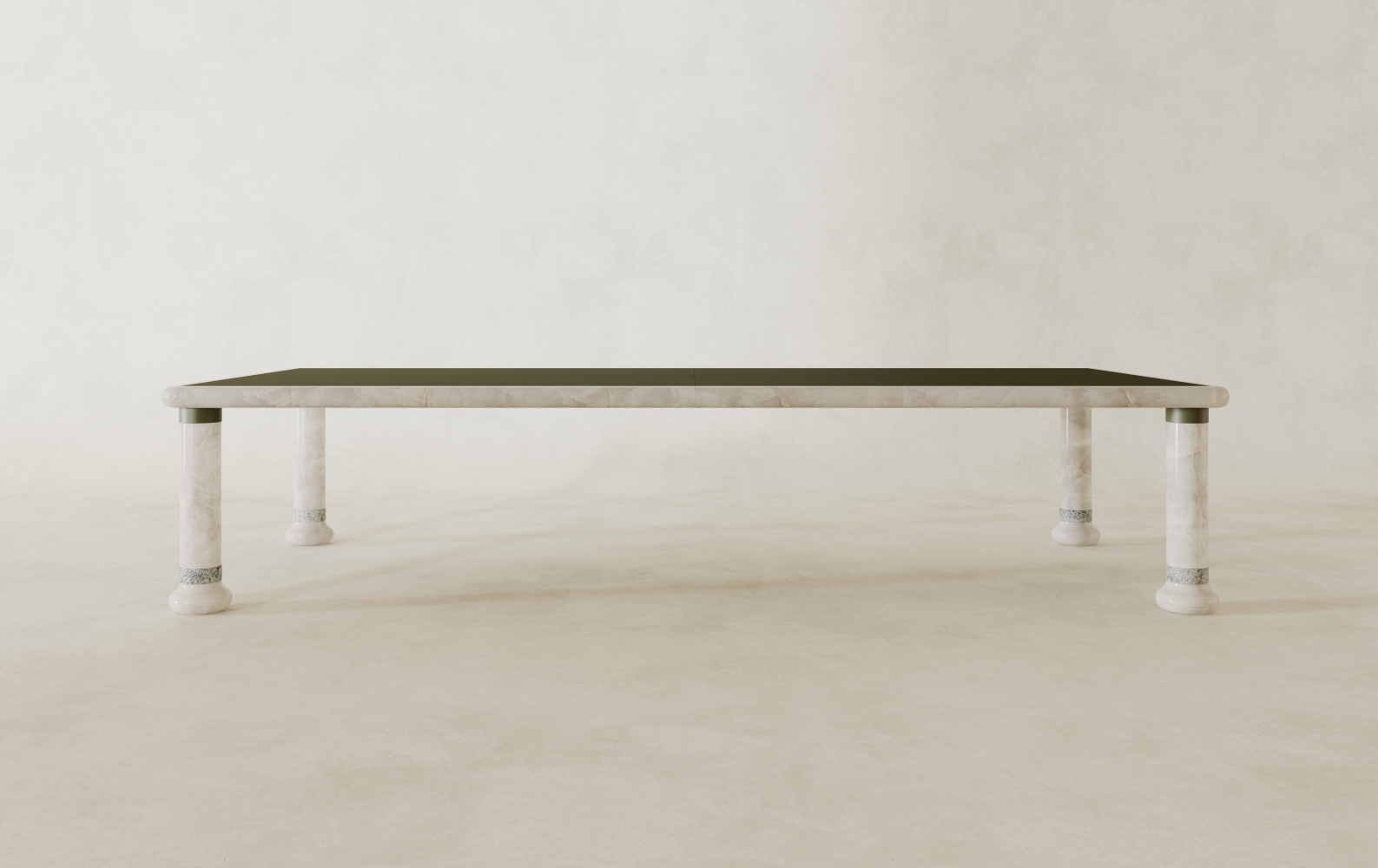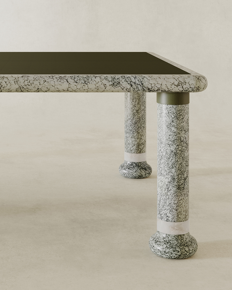 Marbre vert d’Estours, Onyx et cuir