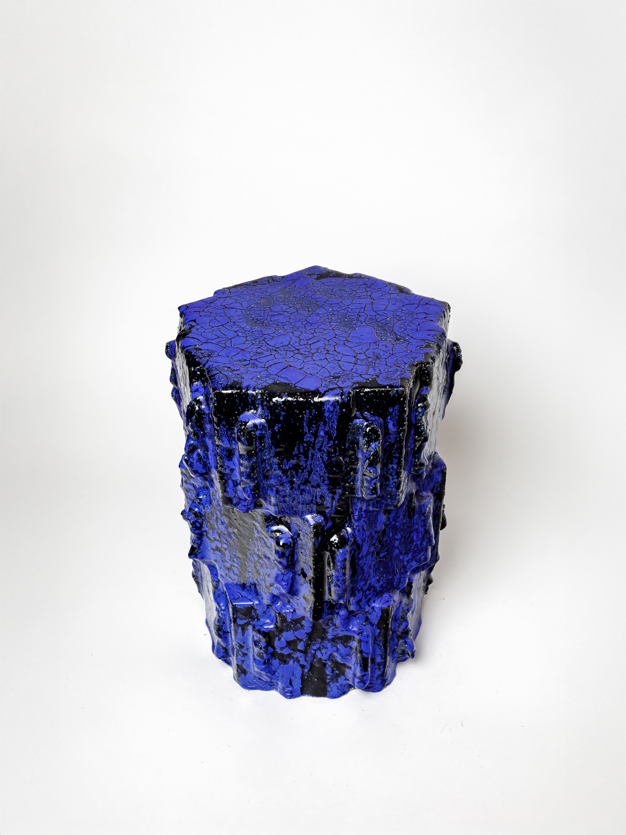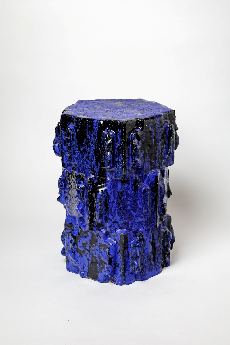 Tabouret en grès émaillé bleu